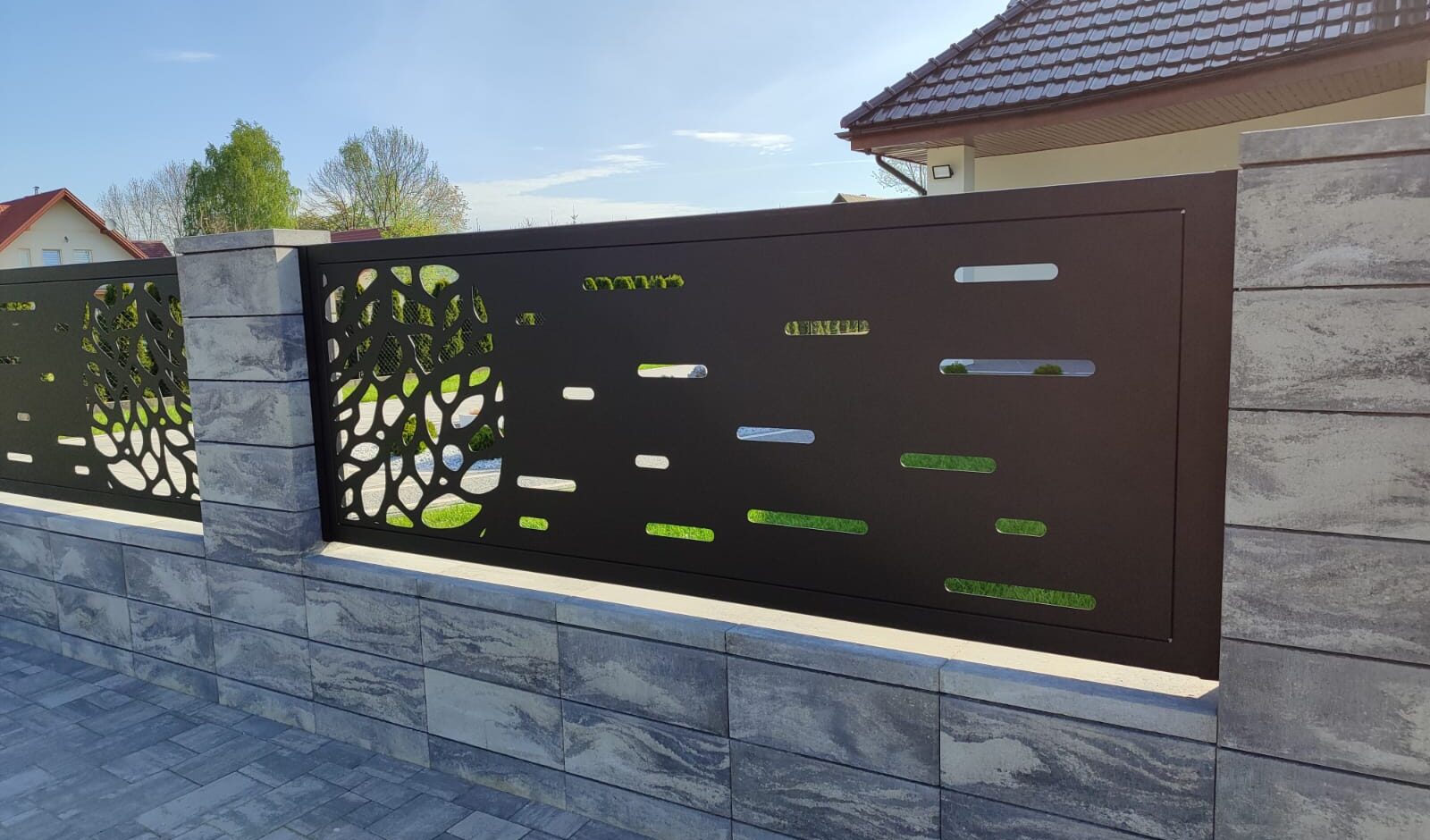 Przedstawiamy nasze nowoczesne ogrodzenie wycinane laserowo, które podbija serca klientów jako nowy trend na rynku. Dzięki elastyczności w dostosowaniu stylu, koloru i wymiarów do potrzeb klienta oraz dużej liczbie wzorów do wyboru, nasze ogrodzenia są idealnym rozwiązaniem dla tych, którzy szukają unikalnego elementu dla swojego ogrodu. Stwórz swoją wymarzoną przestrzeń z naszymi ogrodzeniami ażurowymi.