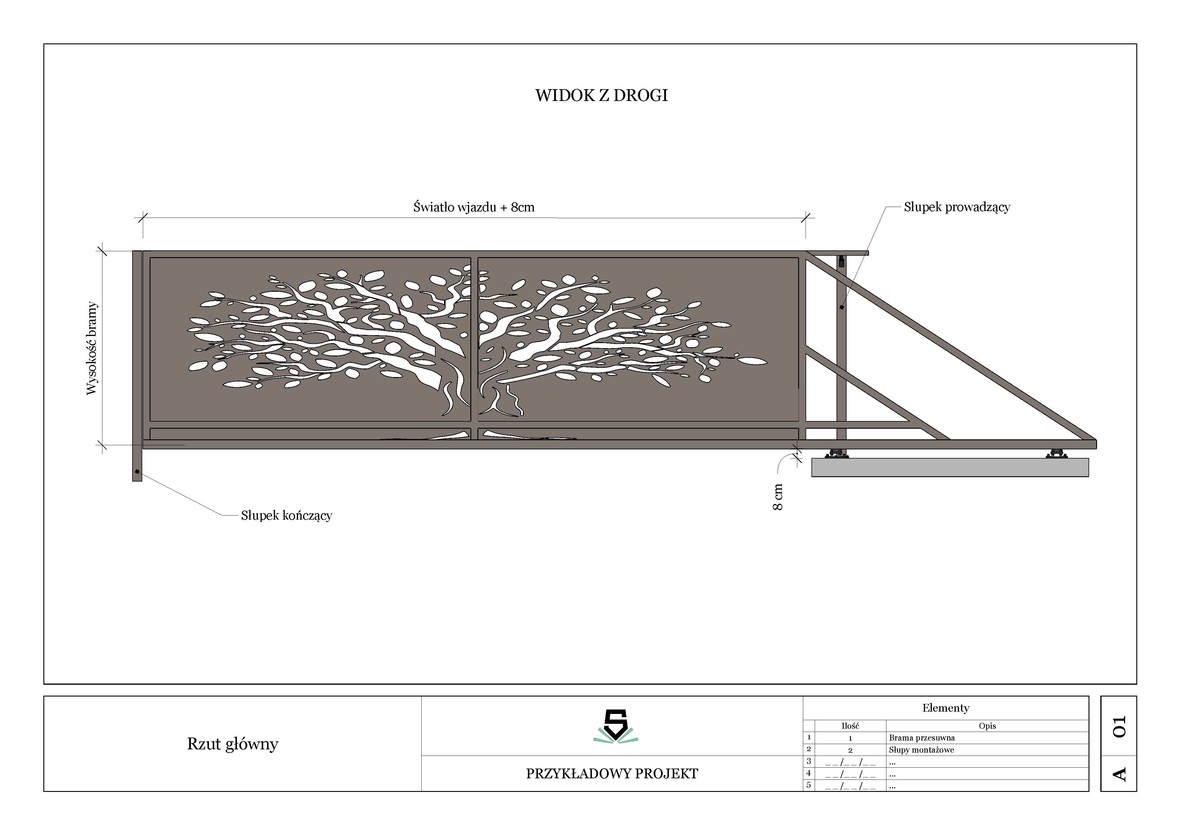 Po zakupie otrzymasz szczegółowy projekt montażu, idealnie dopasowany do zamówionej bramy, co znacznie ułatwi jej instalację i zapewni perfekcyjne dopasowanie. Dodatkowo, wszystkie słupy są już wyposażone w nawiercone otwory montażowe, co jeszcze bardziej upraszcza proces instalacji. Każda brama zawiera poprzeczkę pod automat.
